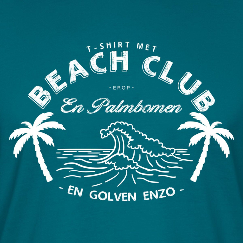 T-shirt met Beach Club erop. En palmbomen. En golven enzo. In de toepasselijke kleur 'oceaanblauw'.