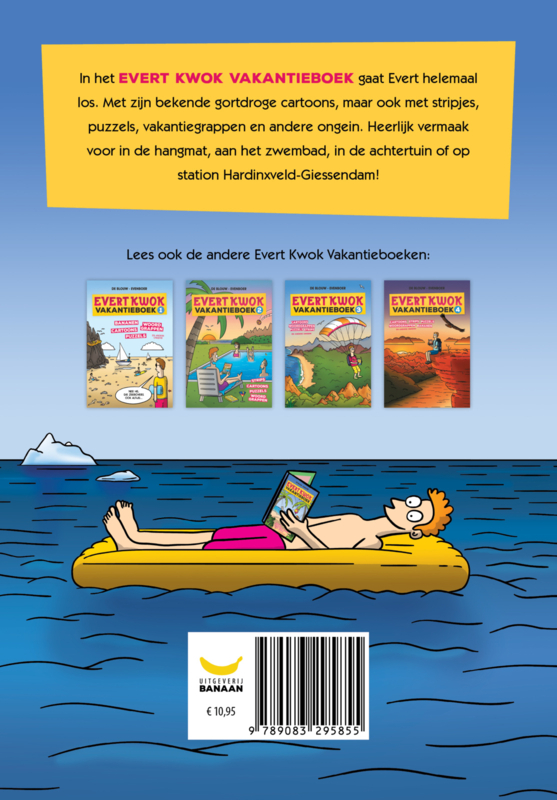 Het Evert Kwok vakantieboek 5 staat bomvol woordgrappen, cartoons, puzzels, kleurplaten, bananen en andere ongein. Ook in deze editie vind je weer een hele lading niet eerder gepubliceerde cartoons (het gros van de cartoons staat niet in de normale pocketreeks) en een vrachtlading nieuwe puzzels, strips, oneliners en ongein!